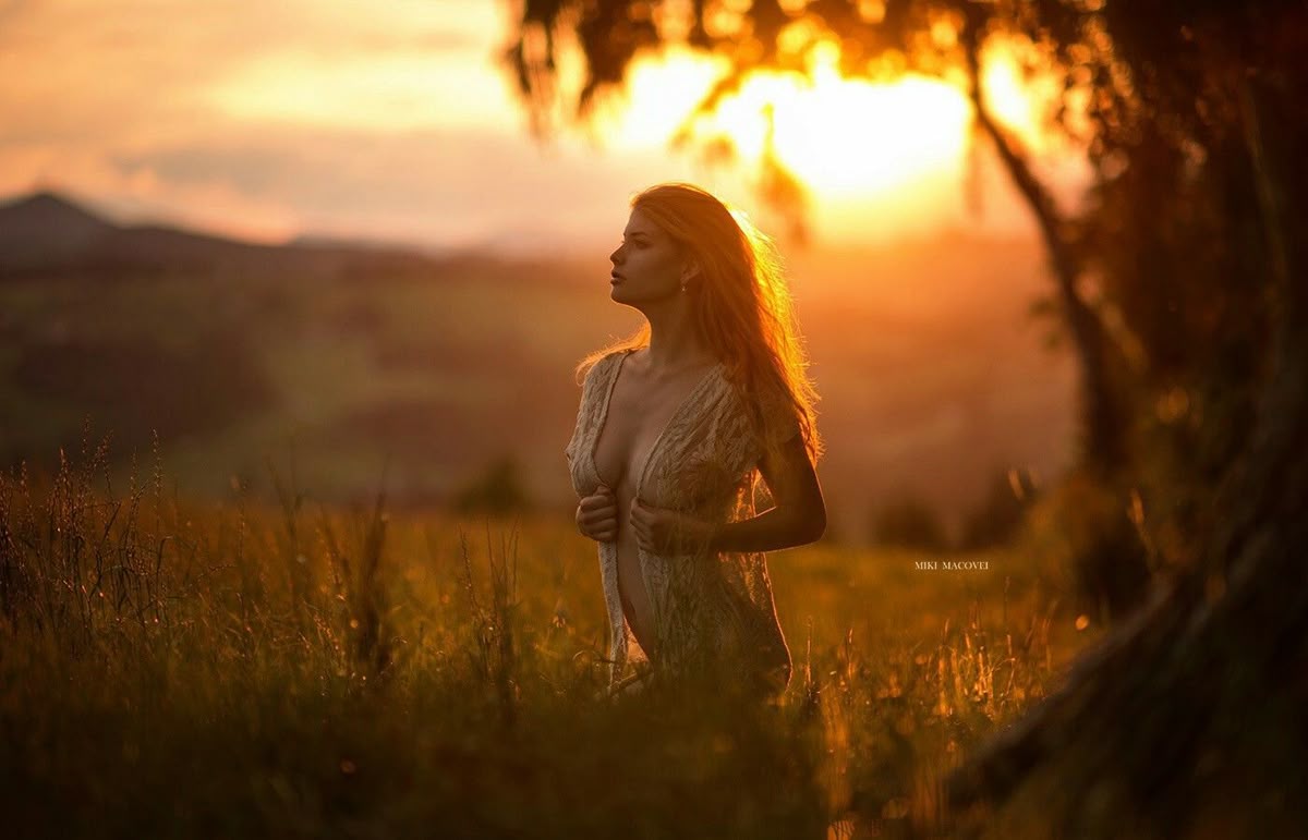 Złote Światło: Sesja odbywa się wyłącznie podczas „złotej godziny”. Wykorzystujemy niskie słońce, aby nadać skórze miękkość i złoty blask. To światło, które wybacza, otula i tworzy intymną atmosferę. Minimalizm Ubioru: ubranie jest tylko tłem. Może to być narzucony koc, męska marynarka na gołe ciało, rozpięta skórzana kurtka czy proste spodnie. Chodzi o to, by ubiór był „niedbały” – jakbyś chwyciła pierwszą rzecz pod ręką, wychodząc na spacer o zachodzie słońca. Surowość Natury: Wysokie trawy, pola, zamglone wzgórza. Te tła nie konkurują z modelką, ale podkreślają jej naturalność. Brak makijażu lub makijaż typu „no-makeup” oraz naturalne, nieułożone włosy są kluczowe. Emocje i Bliskość: Skupiamy się na detalach: piegach, strukturze skóry, przymrużonych od słońca oczach czy dłoniach przeczesujących włosy. „Piękno nie potrzebuje scenografii. Potrzebuje tylko wolności i dobrego światła.”